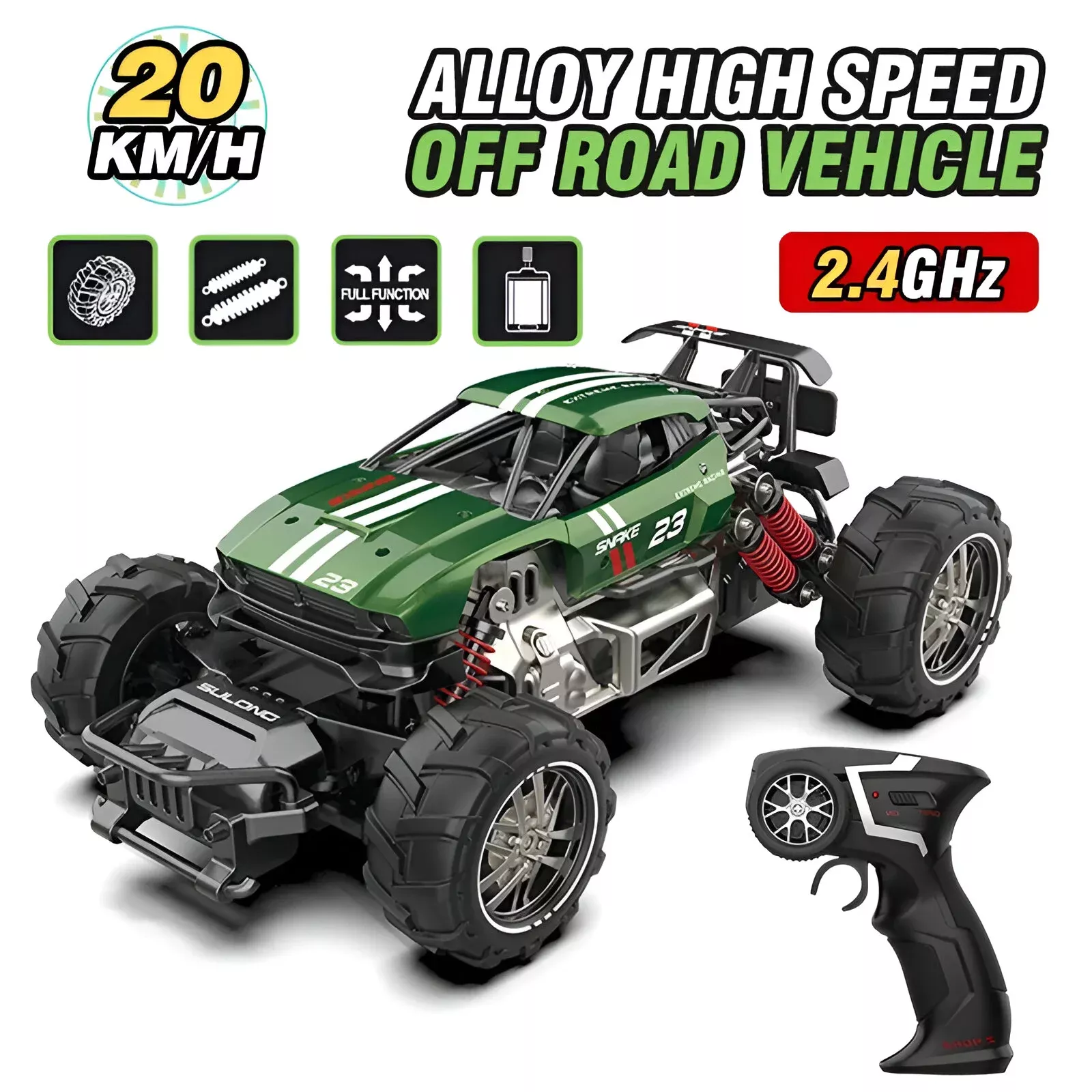 Get ready for non-stop action with this 1:14 scale high-speed RC off-road truck built for adventure. Designed with a tough alloy body, powerful motor, and rugged all-terrain tires, this remote control car delivers thrilling performance on dirt, grass, gravel, and even wet surfaces. With a top speed of up to 20 miles per hour and a control range of about 150 feet, you stay in command wherever the fun takes you.