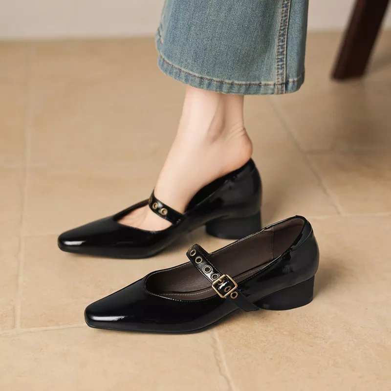 Step into comfort and style with these chic Autumn/Spring Women’s Square Toe Chunky Heel Pumps. Perfectly blending classic design with modern flair, these patent leather shoes are a must-have for the fashion-forward woman. Designed for everyday wear, they offer a fresh twist on the timeless Mary Jane style, featuring a sleek square toe and an elegant belt buckle. Whether you’re running errands or enjoying a casual outing, these pumps are your go-to choice for effortless style and comfort.